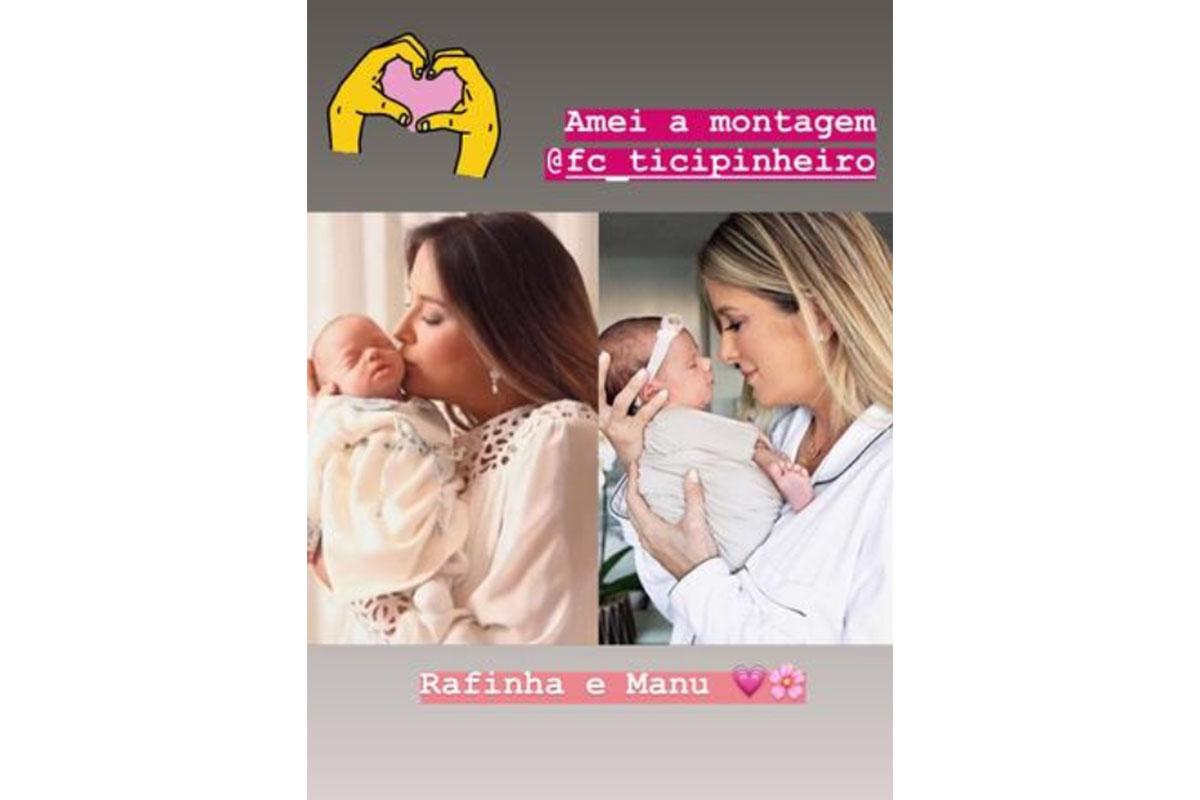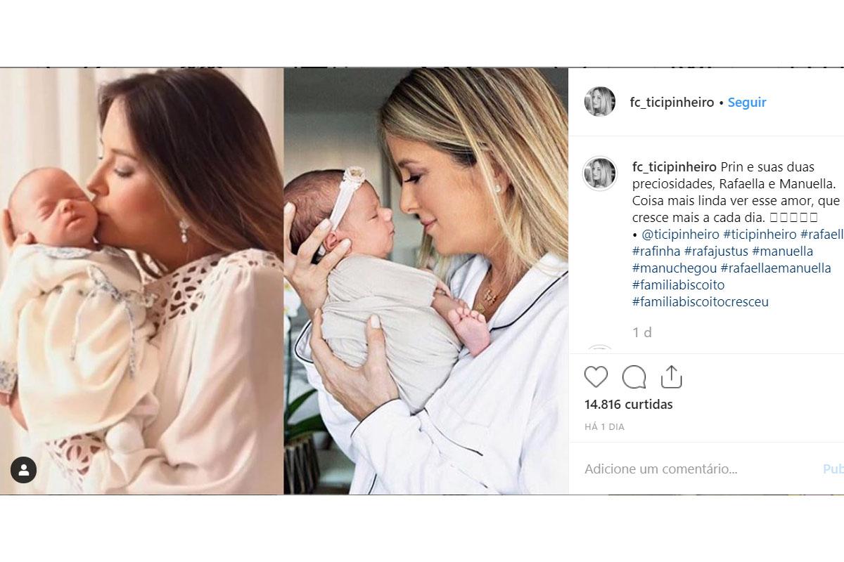 Não faz muito tempo, Tici recebeu uma surpresa muito especial de um fã clube e quis compartilhar com todo mundo. Eles conseguiram achar uma foto de Tici segurando a filha mais velha ainda recém-nascida e fizeram uma montagem comparando Manu e Rafinha.