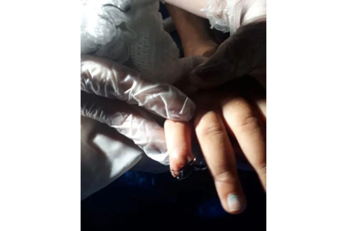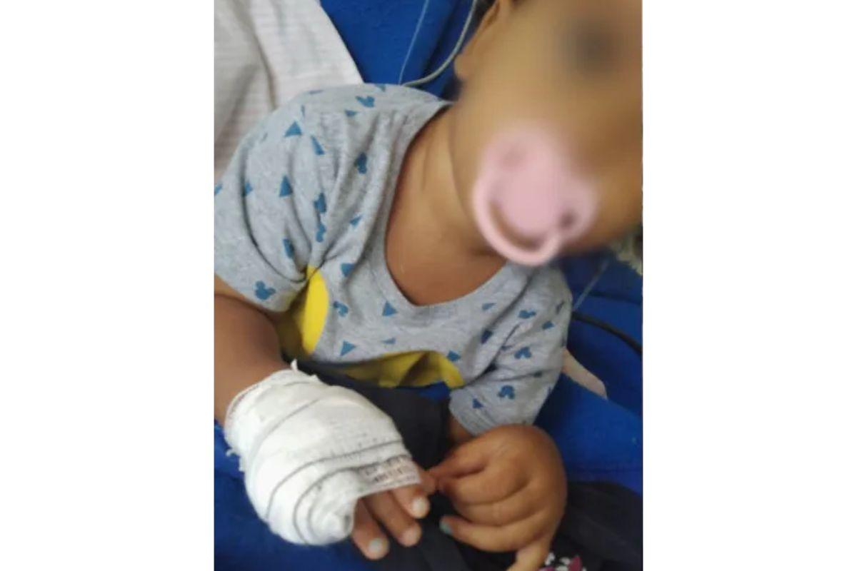 A bebê teve parte do dedo amputado