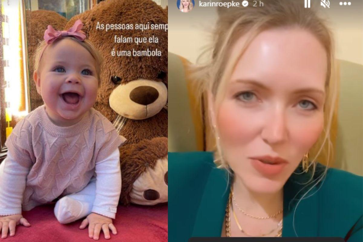 A artista Karin Roepke abriu uma caixa de perguntas no Instagram para responder às dúvidas dos seguidores. Em uma sequência de stories ela comentou sobre como está sendo a viagem para Itália com o marido, o marido Edson Celulari e a filha Chiara, de 8 meses. Além disso, ela falou sobre qual nome colocaria se tivesse tido um menino, alimentação da filha e respondeu perguntas sobre moradia no exterior.