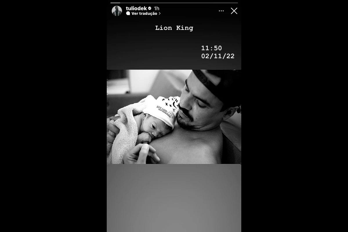 Gabriela Pugliesi deu à luz Lion no dia 2 de novembro. O bebê é o primeiro filho da influenciadora, o qual também é fruto de seu relacionamento com Tulio Dek. A novidade foi confirmada através da postagem realizada pelo marido em seus stories do Instagram.