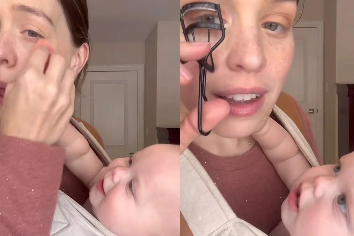 Em um vídeo com mais de 600 mil visualizações, a mulher mostra como faz para se arrumar com a bebê. A criança muito encantadora fica no colo da mãe, presa ao corpo em um canguru (acessório que auxilia no transporte de crianças pequenas) e reage aos movimentos da mesma enquanto ela se arruma.