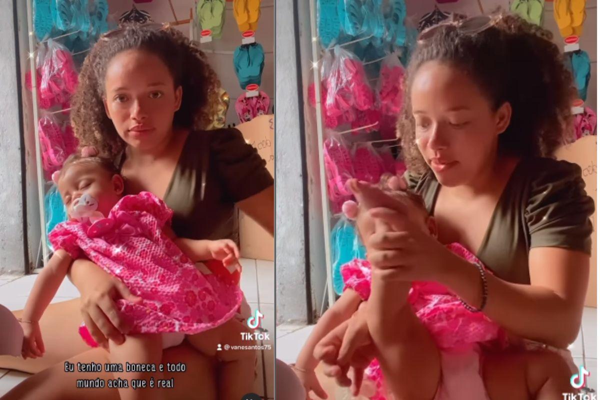 Uma mulher viralizou no Tik Tok ao dizer que possui uma boneca realista. O vídeo fez um grande sucesso nas redes sociais e já conta com mais de 87 mil visualizações.