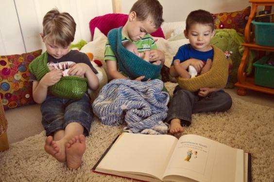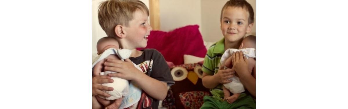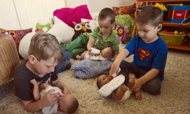 Alguns pais incentivam as brincadeiras com bonecas semelhantes a bebês entre os meninos, para se tornarem mais participativos quando tiverem filhos, no futuro. É o caso da fotógrafa canadense Arlee Sebryk, que postou na internet fotos de seus filhos brincando de boneca (veja galeria abaixo).