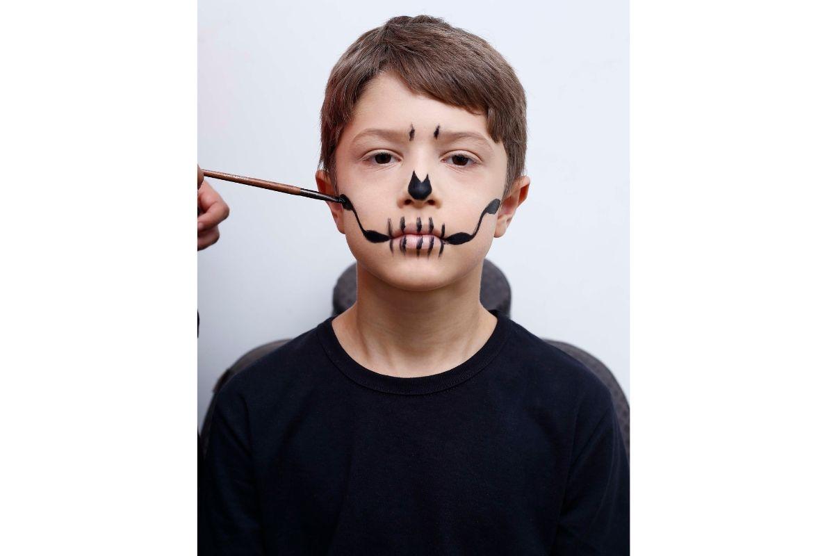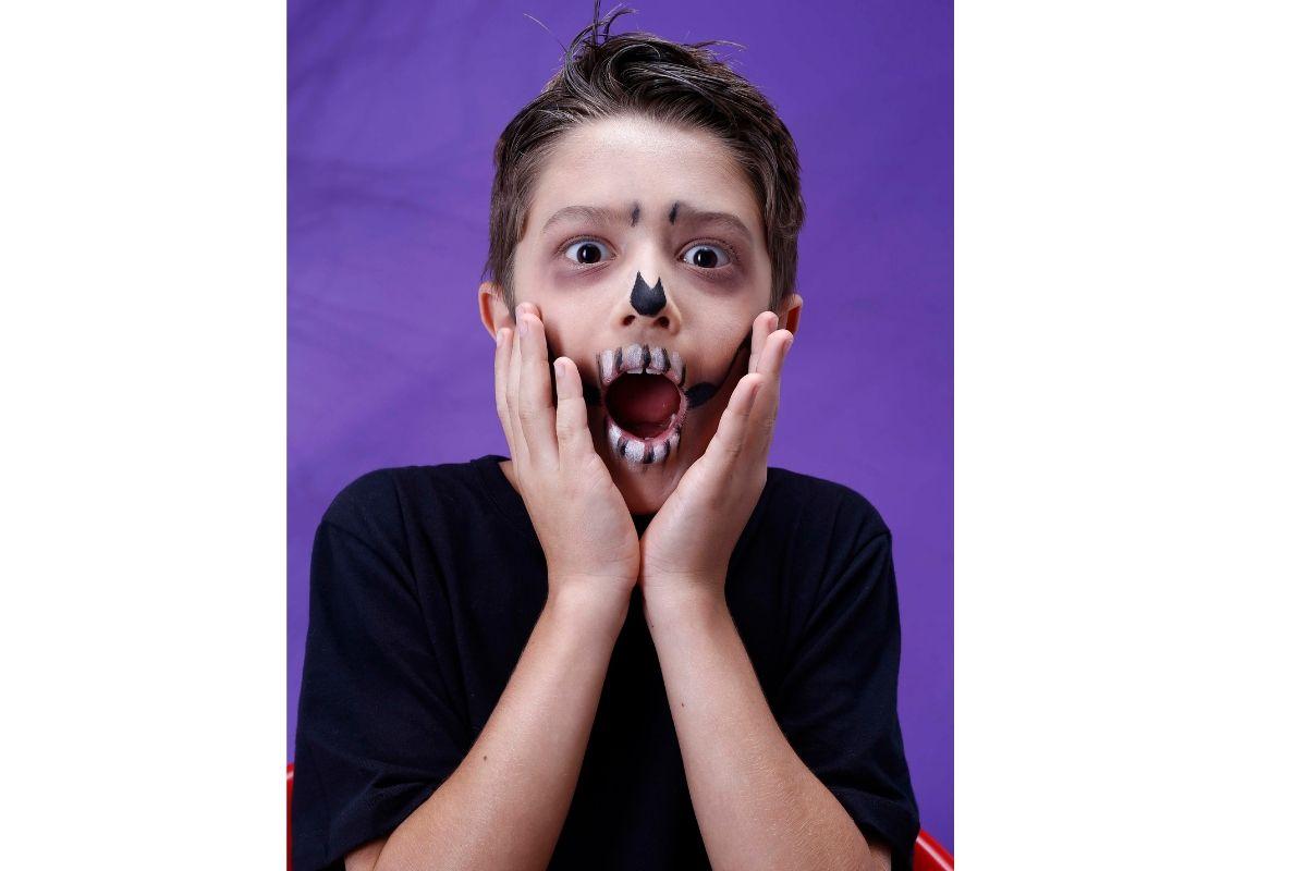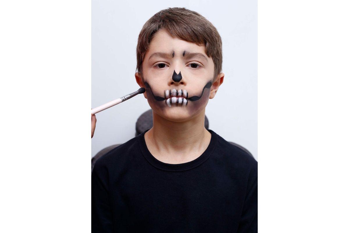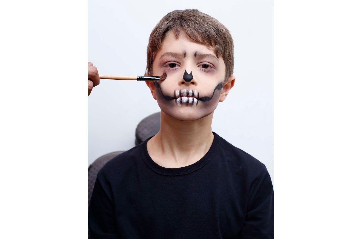 Voilá! Seu filho está pronto para se divertir durante a caça aos doces. É fácil e prático! Em poucos passos e segundo o seu filho se transformou numa caveirinha!