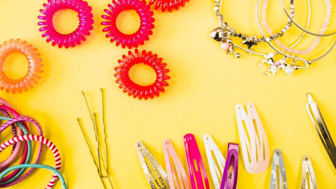 Em vez de colar direto nos fios, utilize acessórios como presilhas, grampos, elásticos, fitas, laços, tiaras e headbands. Recomenda-se colar objetos decorativos nesses itens com cola quente ou fita dupla-face, o que facilita a fixação e evita o contato direto com o cabelo.