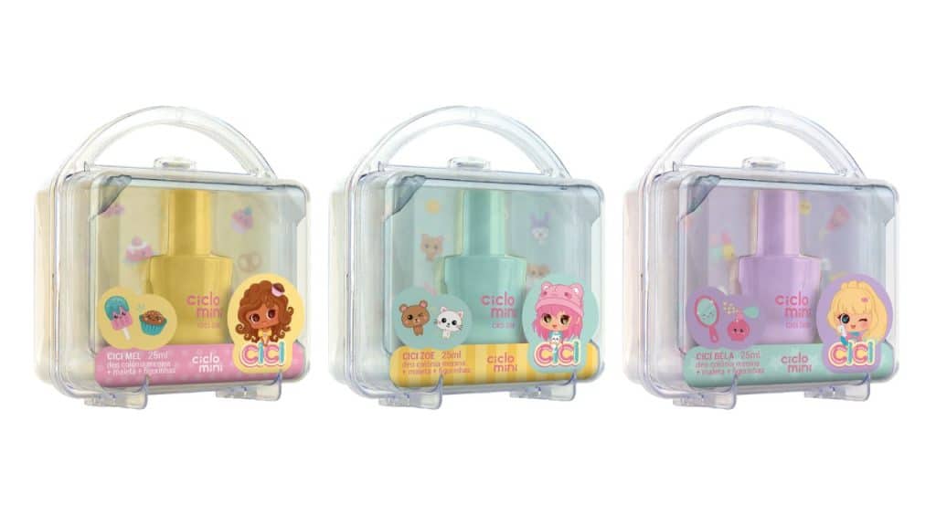 As maletinhas de acrílico com miniaturas das fragrâncias Cici vem acompanhas de adesivos exclusivos para personalizar. você pode escolher entre as três colônias diferentes para colecionar: Cici Zoe, alegre e iluminada; Cici Bela, charmosa e autêntica; e Cici Mel, doce e romântica. Esse kit presenteável pode ser encontrado por R$69,90.