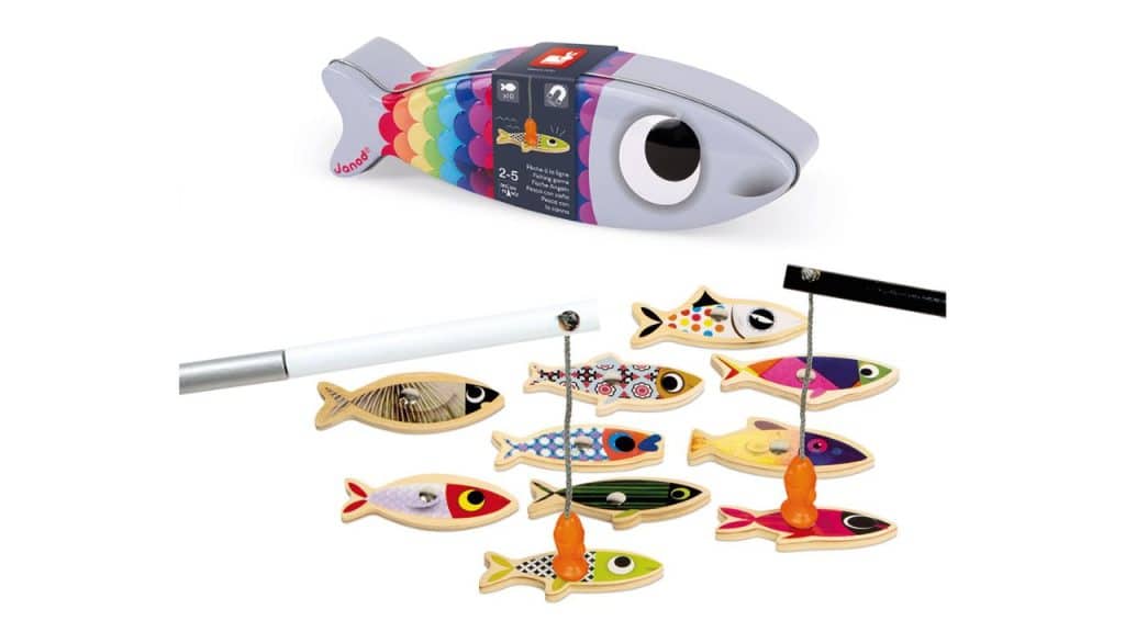 Composto por 10 sardinhas divertidas e coloridas, o kit acompanha 2 varas de madeira com anzol em formato de peixe. Acompanha uma caixa de metal em forma de sardinha, com detalhes em relevo, que deixa a brincadeira ainda mais especial. Ele é indicado para crianças a partir de 3 anos e por ser encontrado no site Amarelo Ipê a partir de R$126,90.
