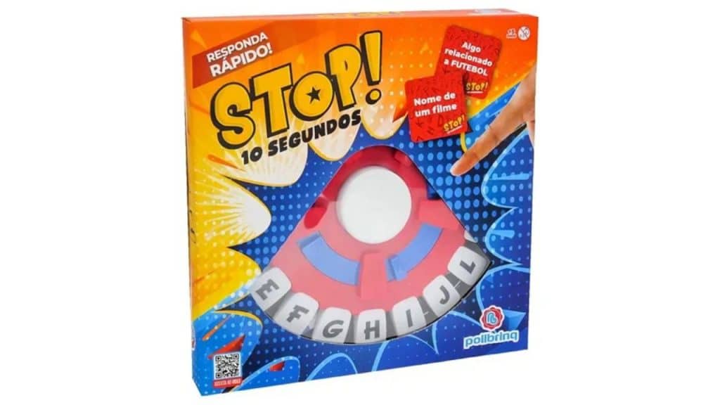 Jogar stop é um mix de adrenalina e diversão, mas essa versão é ainda mais desafiadora! Os jogadores têm apenas 10 segundos para responder às categorias propostas, pressionar a letra correspondente no tabuleiro e passar a vez. Quem não conseguir dentro do tempo é eliminado da rodada. Ideal para brincar em família ou com amigos, o jogo estimula agilidade, criatividade e garante muitas risadas. A idade mínima indicada é de 5 anos e pode ser encontrado por R$57,63.