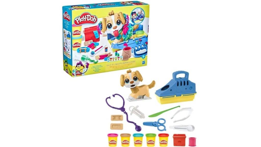 Com 10 ferramentas, incluindo estetoscópio, termômetro e curativos, as crianças podem cuidar do cachorrinho, criar sua língua e até modelar pêlos e estilos diferentes. A casinha do cachorro ainda traz moldes divertidos para inventar remédios e faixas. O kit acompanha 5 potes de massinha atóxica e é ideal para crianças a partir dos 3 anos. Você pode encontrá-lo por R$99,99.