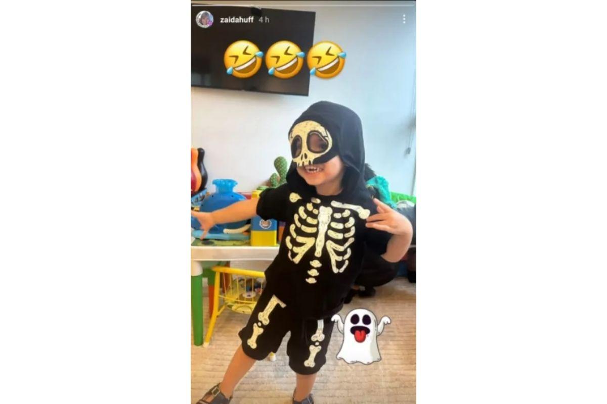 Na imagem ele aparece vestido com uma engraçada fantasia de esqueleto. Além disso, o garoto mostra um enorme sorriso. A avó do menino só colocou emojis dando risada na legenda da publicação, mas já entendemos que ela achou o momento muito engraçado.