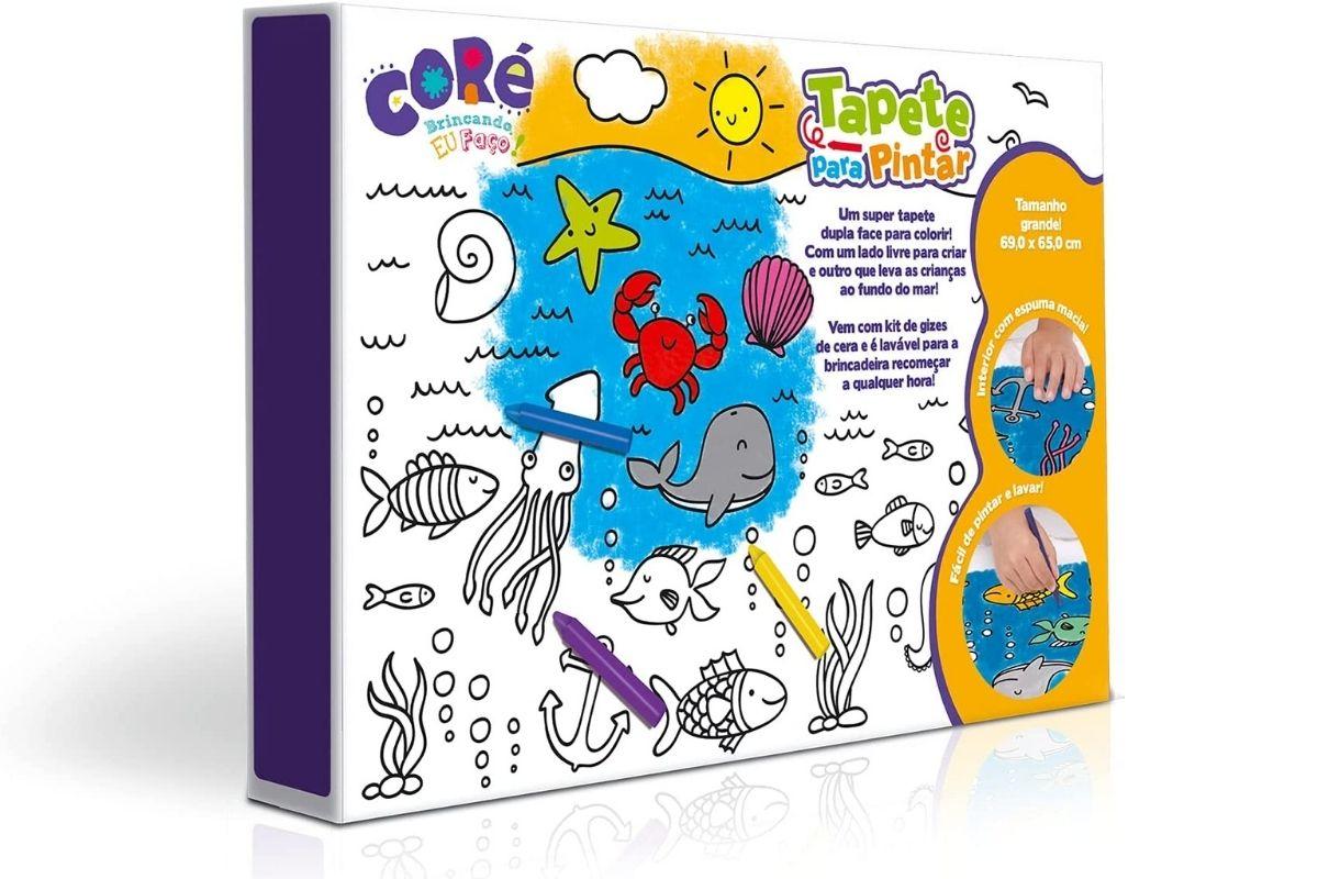 Indicado para crianças maiores de três anos, esse tapete vem com desenhos de animais do fundo do mar, além de palavras em inglês que seu filho poderá aprender brincando. Vem com 12 cores de giz de cera e também um apagador em formato de estrela do mar. Para comprar pela Amazon com o preço médio de R$ 64,00, é só clicar AQUI.