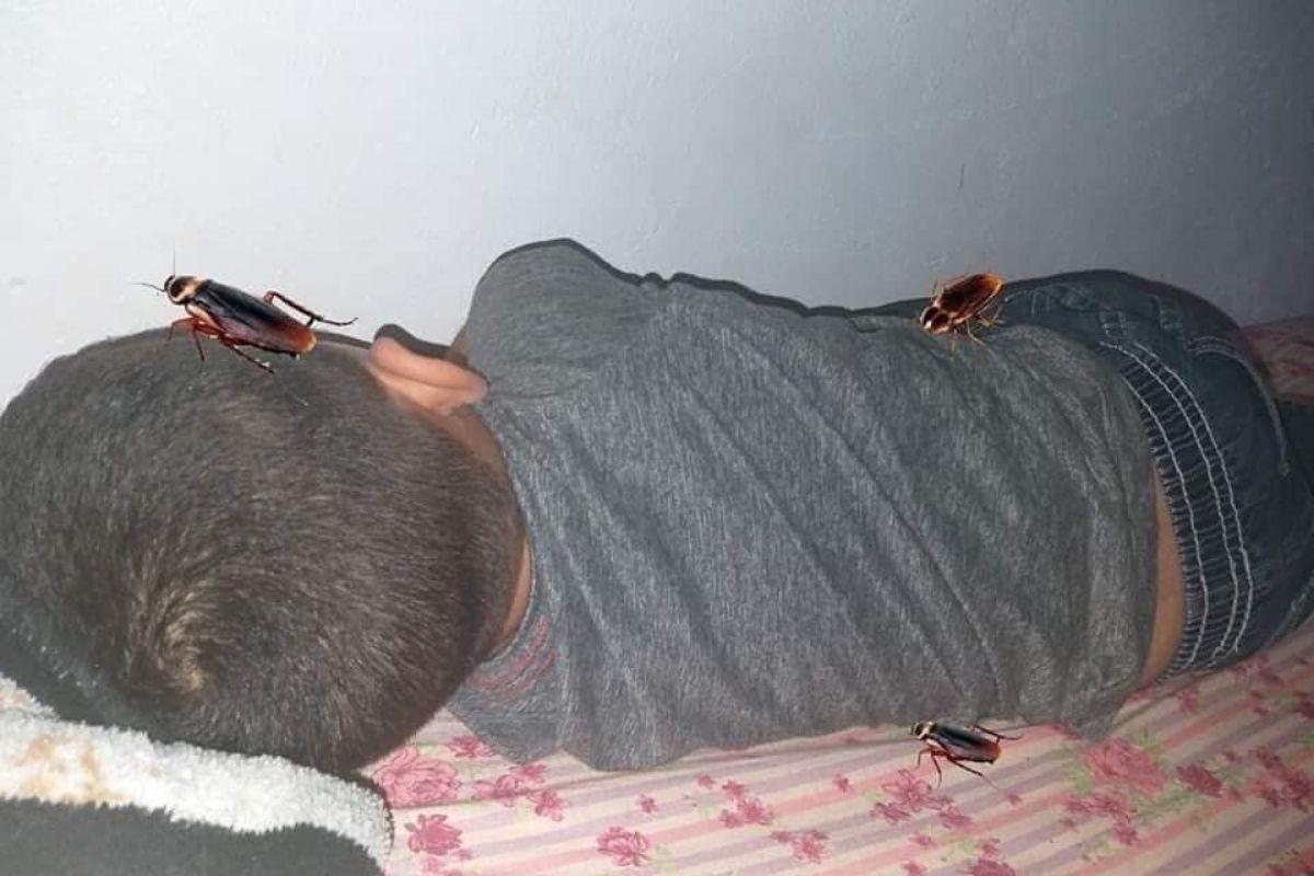A história, compartilhada pelo jornal britânico The Sun, dizia o seguinte na legenda da foto: “Ele não queria tomar banho, então eu tirei uma foto enquanto ele dormia e a editei com baratas. Agora ele toma banho 10 vezes por dia”, brincou.