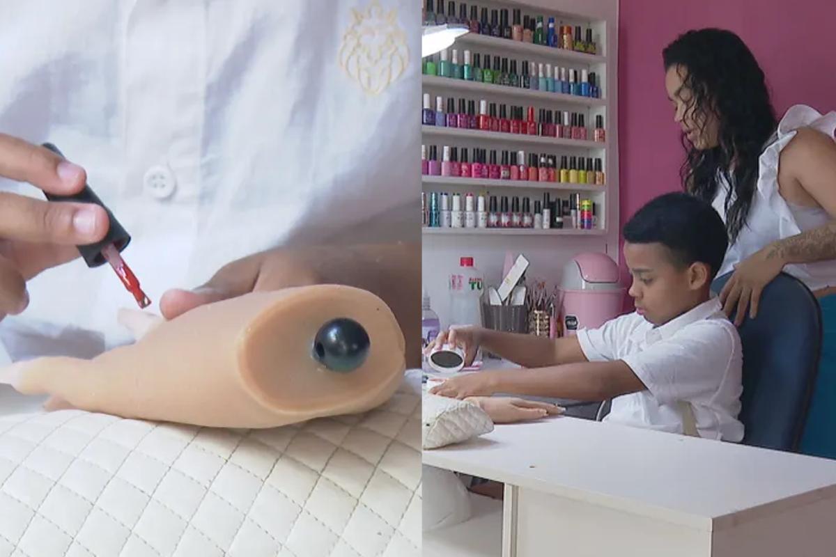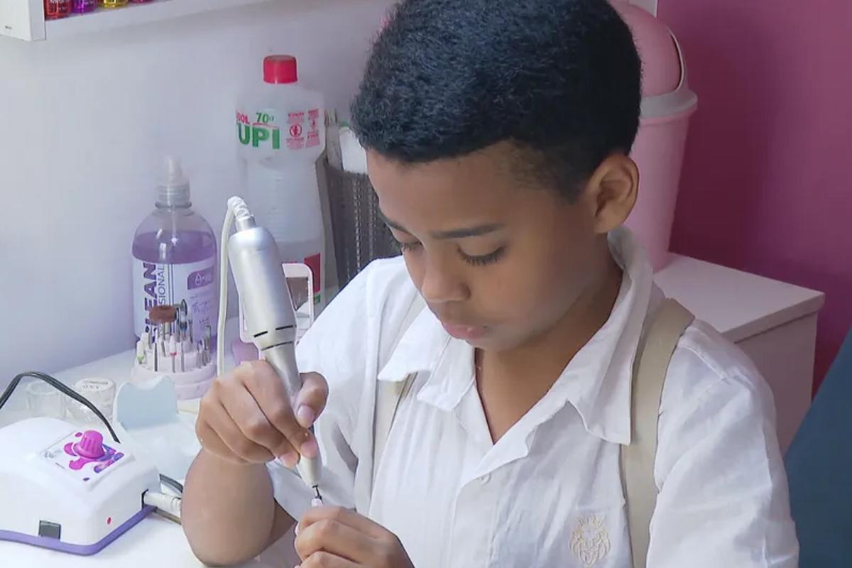 “Quando eu o vi fazendo, ele pegou na lixa certinho, coisa que quem é da área sabe que é difícil. Quando eu olhei, eu falei: ‘Gente, ele tem jeito’. Ele faz quando quer, porque ele também tem escola, ele estuda. Ele é uma criança normal, ele não trabalha, não atende clientes”, contou a mãe.