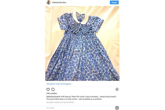 Desenhado pela Little Alice London’s Alice Avenel, o look rapidamente se tornou o desejo de todas as famílias britânicas e estrangeiras. A peça esgotou no site em menos de 24 horas, de acordo com a empresa em entrevista para o Today. O vestido custa 45 libras o que dá em média 218 reais.