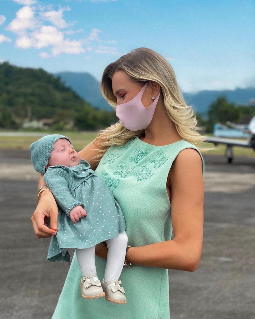 Na noite desta sexta-feira (10), a modelo compartilhou uma foto da filha preparada para passear de avião.