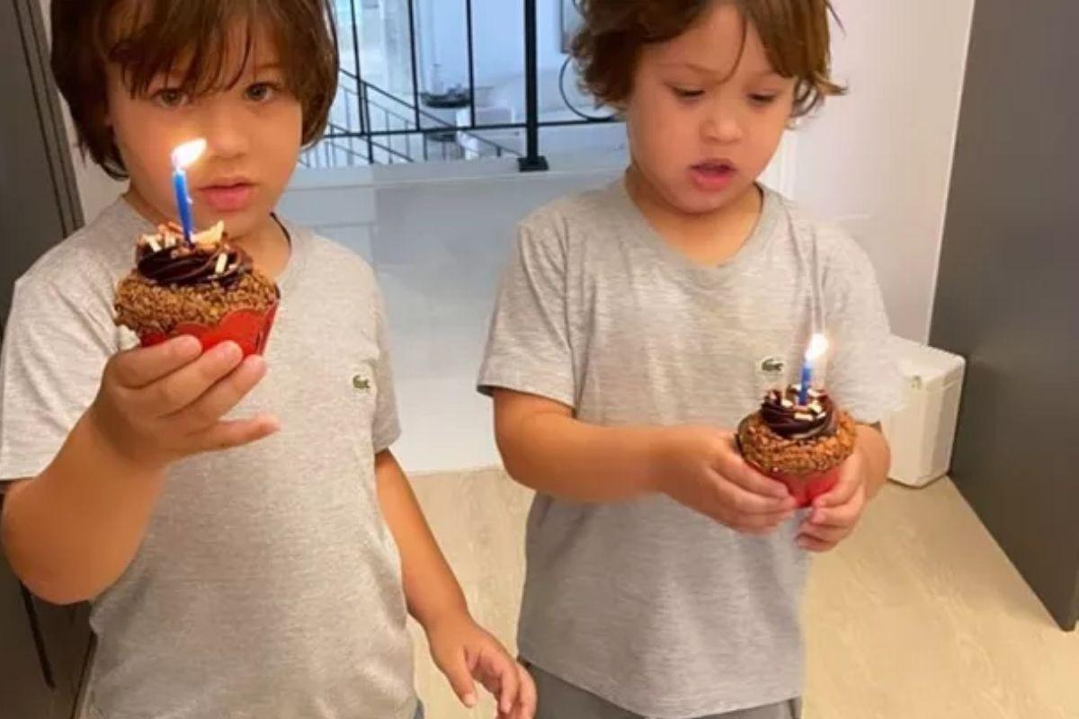 Andressa Suita usou as redes sociais na última sexta-feira, 3 de setembro, para mostrar os filhos, Gabriel, de quatro anos, e Samuel, de três anos,  frutos do relacionamento com Gusttavo Lima comemorando o aniversário do pai.