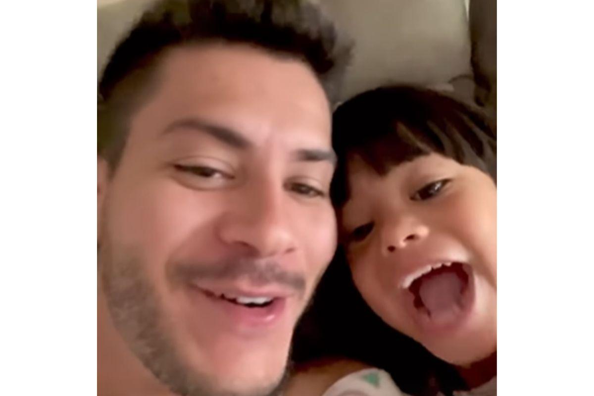 O ex-BBB gravou os vídeos com a filha e publicou na ferramenta Stories da plataforma Instagram: “Bom dia! Bom dia! Acordamos já. Está tudo bem? Você dormiu bem? Não dormiu? Dormiu sim! Você dormiu a noite toda, acordou só agora de manhã”.