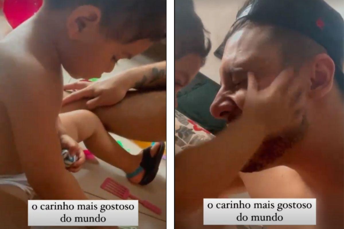 Momentos antes da notícia do acidente de avião que causou a morte de Marília Mendonça, Murilo Huff compartilhou vídeos ao lado do filho. Nos stories do Instagram, o menino aparece acariciando o rosto do pai. “O carinho mais gostoso do mundo”, escreveu Murilo ao compartilhar o vídeo.