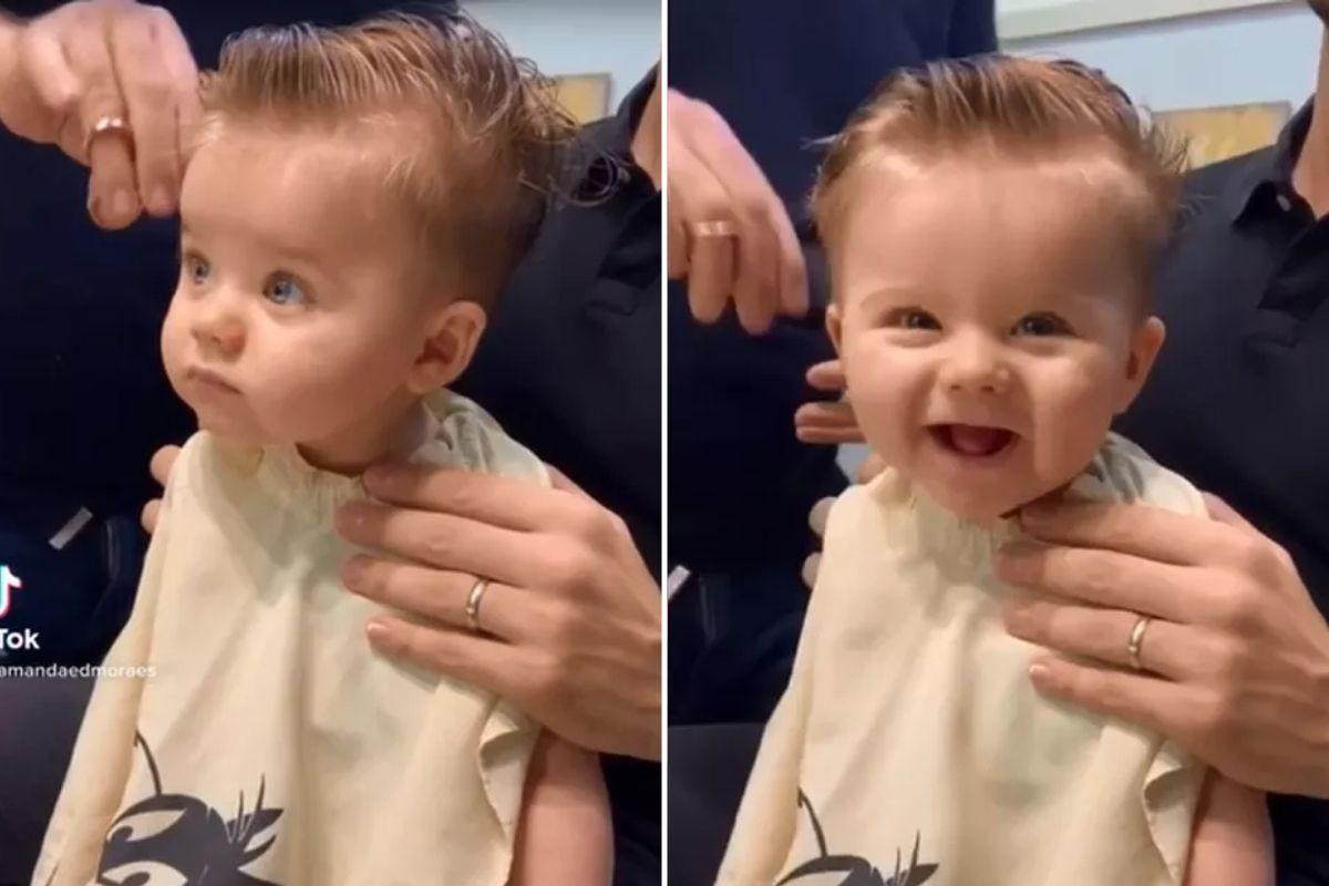 “Levamos porque o cabelo dele já estava muito grande, atrapalhando, pegando no olho. Aí chegando no cabeleireiro tivemos a ideia de fazer o vídeo para a gente mesmo, para guardar depois. Mas aí a gente gravou tudo e ficou super fofo. Ele ficou quietinho, deu risadinha”, lembra.