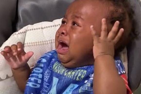 O menino cai no choro após seu pai Greg Harris aparecer com o cabelo raspado pela primeira vez. A mãe Melissa Harris, gravou toda a reação do filho desde o momento em que o pai apareceu na sala com o novo look, até a reação do filho.