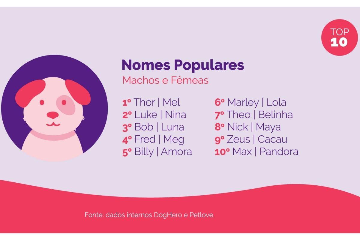 De acordo com informações do PetCenso 2020/2021, Mel e Thor são os nomes mais comuns para os cachorros no Brasil. Segundo a Folha de São Paulo, o levantamento foi feito com base em mais de 1,8 milhão de pets cadastrados na DogHero e na Petlove, após fusão das operações das empresas anunciada em outubro do ano passado.