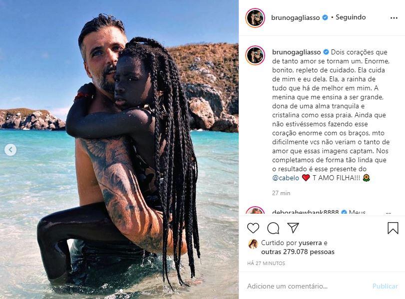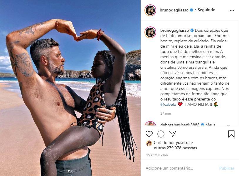 O ator Bruno Gagliasso usou as redes sociais neste sábado, 23 de janeiro, para compartilhar lindas foto ao lado da filha, Titi. O ator está aproveitando uma viagem em Fernando de Noronha ao lado de Titi e Bless, frutos de seu relacionamento com Giovanna Ewbank.