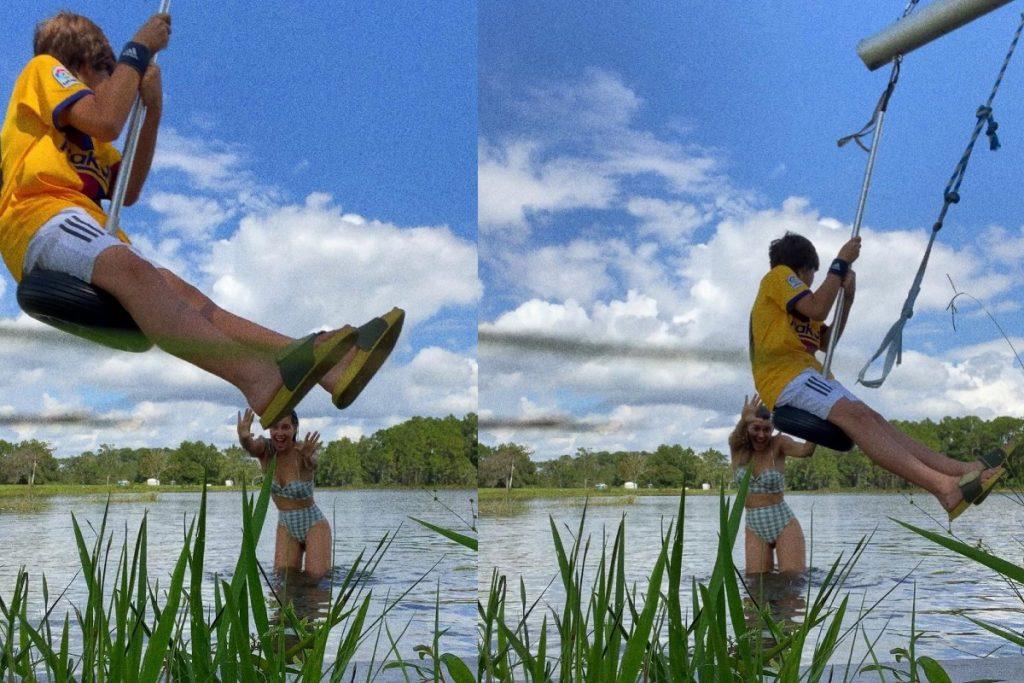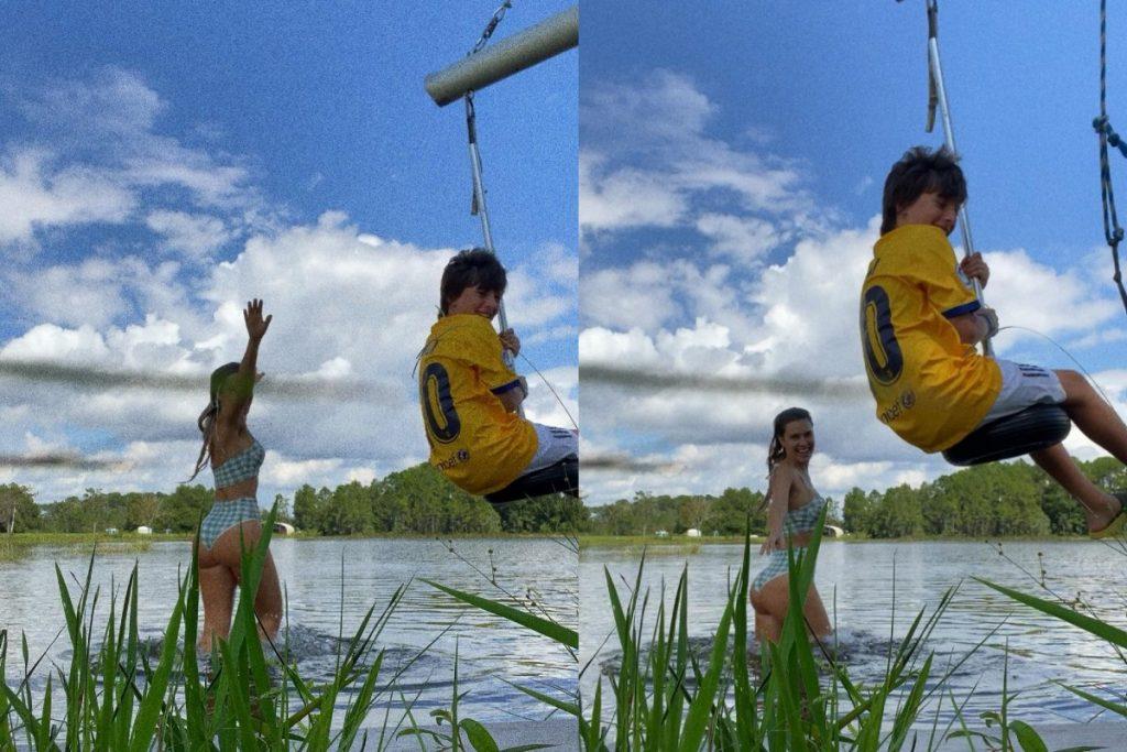 O menino também surge em um brinquedo aquático. “Uma espécie de tirolesa. Quase me tirando a cabeça… Mas no fim, sobrevivi”, brincou na legenda da publicação. O seguidores comentaram vários elogios à família.