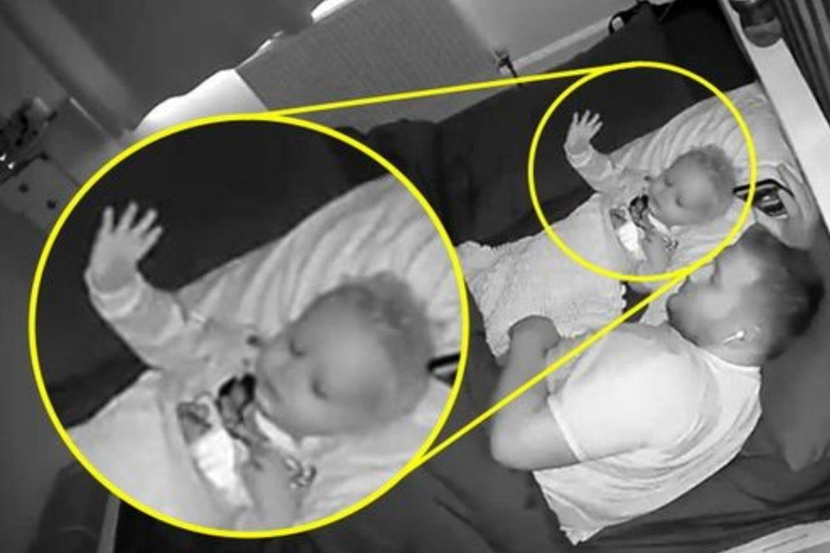 Porém, imagens mostraram que o menino estava olhando para um ponto no cômodo de forma confusa, e depois, abriu um sorriso e começou a acenar um canto da sala enquanto ria.