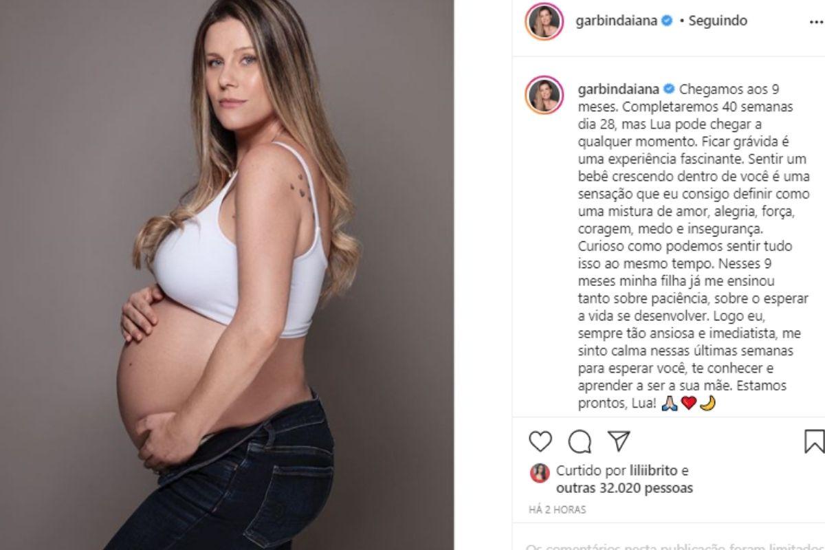 “Chegamos aos 9 meses. Completaremos 40 semanas dia 28, mas Lua pode chegar a qualquer momento. Ficar grávida é uma experiência fascinante. Sentir um bebê crescendo dentro de você é uma sensação que eu consigo definir como uma mistura de amor, alegria, força, coragem, medo e insegurança. Curioso como podemos sentir tudo isso ao mesmo tempo”, começou escrevendo a famosa, ao compartilhar uma das fotos.