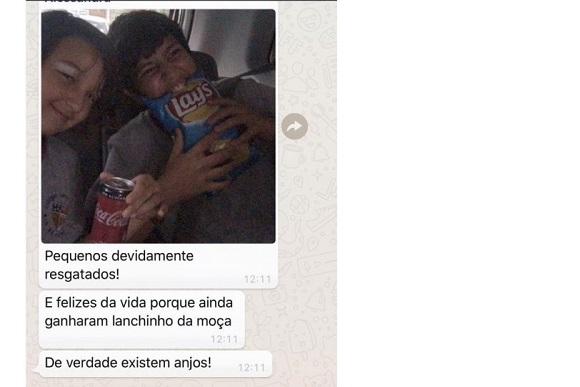 “De verdade, existem anjos!”, Alessandra escreveu no WhatsApp.