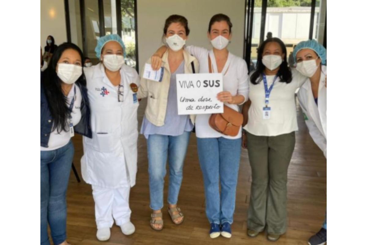 Renata Vasconcellos recebeu a primeira dose da vacina contra a covid-19 na manhã desta segunda-feira, 21 de junho. A jornalista foi imunizada na companhia da irmã gêmea Lanza Mazza, no Rio de Janeiro, e publicou uma foto para comemorar o evento no Instagram.