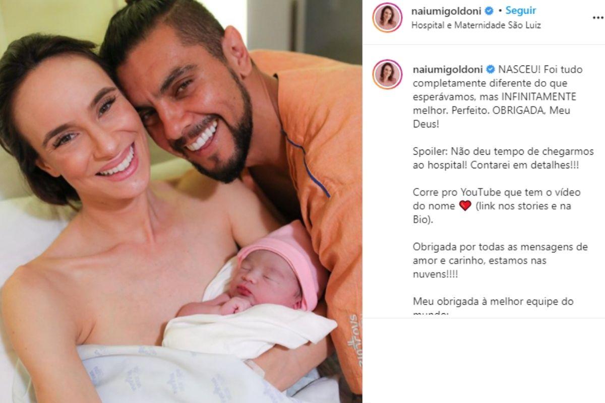 A menina nasceu no sofá de casa (Foto: Reprodução / Instagram / @naiumigoldoni)