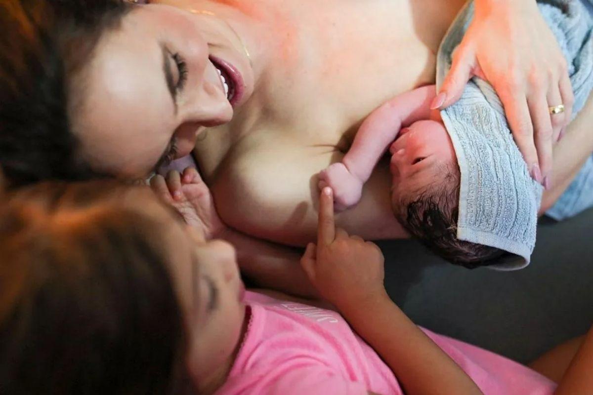 Segundo a mãe, não deu tempo de chegar ao hospital e o nascimento acabou acontecendo no cômodo mesmo. “Foi muito especial. Não deu tempo de chegar ao hospital. Foi um parto muito rápido. O trabalho de parto ativo, em si, durou cerca de uma hora e meia. A gente acaba se baseando nas sensações no anterior, né? O da Maelle foram 14 horas, com bastante dor”, disse, se referindo ao nascimento da primeira filha, de 3 anos.