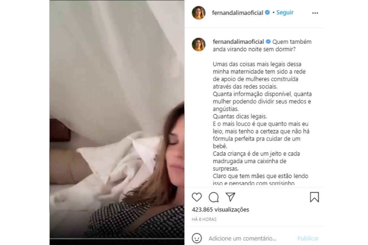 No post anterior, Fernanda Lima havia desabafado no Instagram sobre a agitação de Maria Manoela, durante a noite. Ela disse que voltou a trabalhar e não tem conseguido dormir direito já que a filha só dorme três horas seguidas.