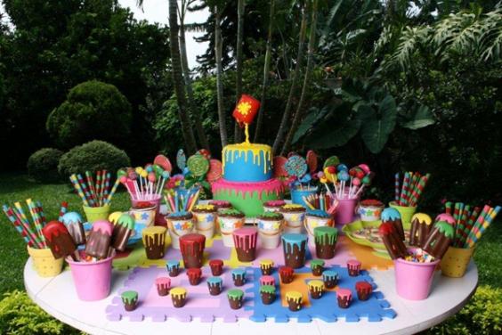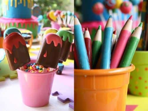 O tema aqui são as cores: tintas, sorvetes, lápis e giz de cera. Inspiração: Constance Zahn Fotos: Kit Gaion