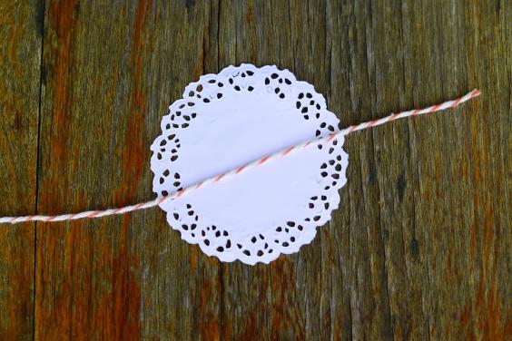 Estique o barbante e posicione um círculo de papel embaixo dele.