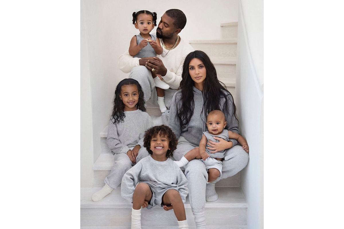 No post, ela aparece sentada em uma escada ao lado de Kanye e os quatro filhos: North, Saint, Chicago e Psalm. Com todas as roupas combinando e exalando alegria, a empresária escreveu na legenda que aquela foto era o cartão de Natal da família West no ano de 2019.