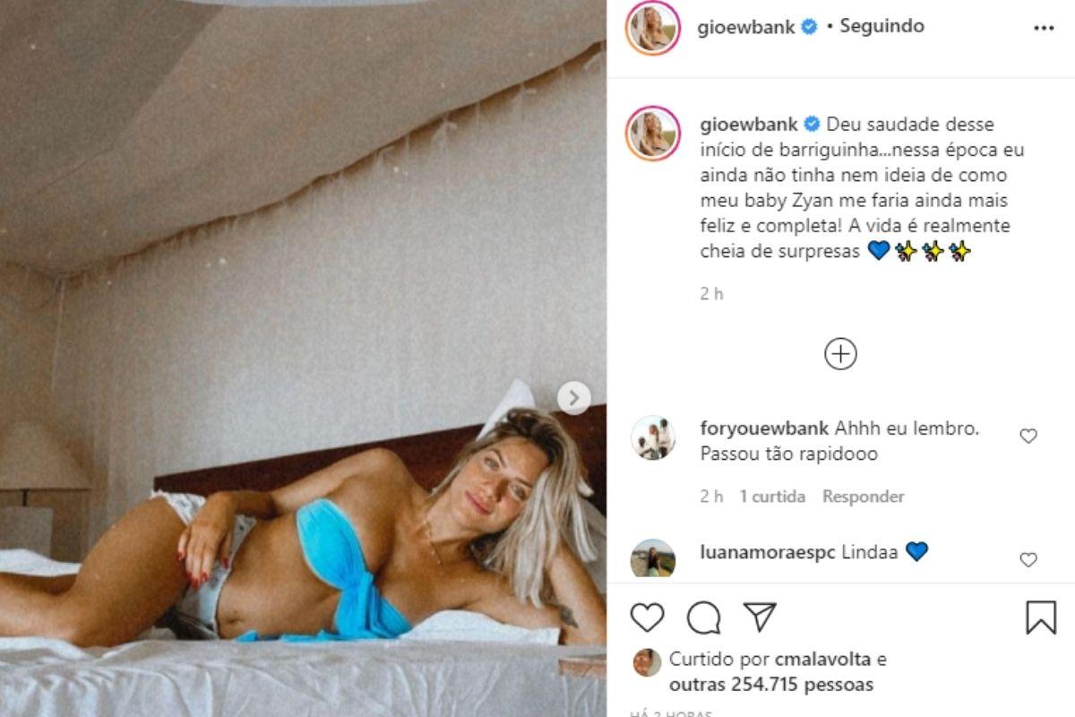 A apresentadora Giovanna Ewbank usou as rede sociais nesta segunda-feira, 7 de novembro, para comaprtilhar uma lembrança cheia de amor. A famosa publicou uma foto que tirou no começo da gestação de Zyan, o filho caçula. Junto com a foto, ela falou um pouco sobre a saudade da gravidez. A famosa é casada com Bruno Gagliasso e também é mãe de Titi e Bless.