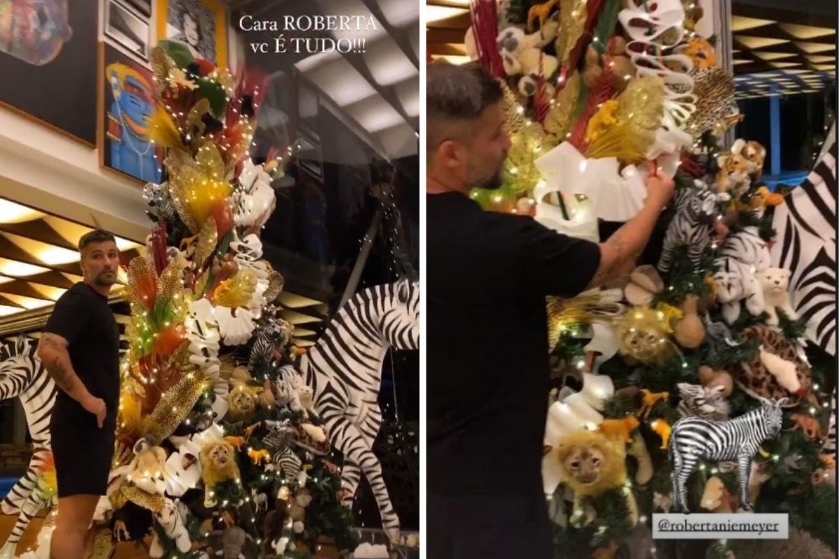“Quero ver o Zyan vendo isso!”, admitiu a mãe pelos stories. A árvore foi elaborada por decoradores da família, segundo o casal.