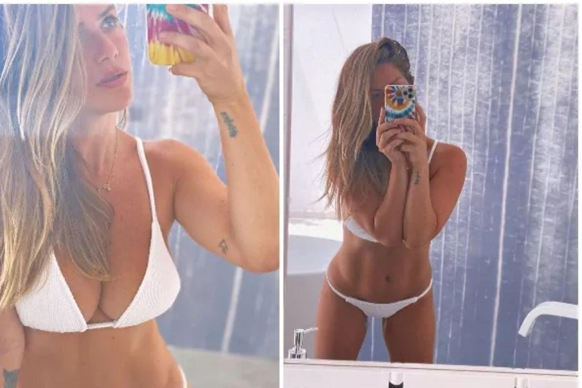 No Instagram, ela publicou fotos em que aparece de biquíni branco, Gio mostrou o corpo em boa forma e escreveu em inglês: “Mamãe gostosa”. Rapidamente, fãs e amigos da família fizeram questão de comentar a publicação.