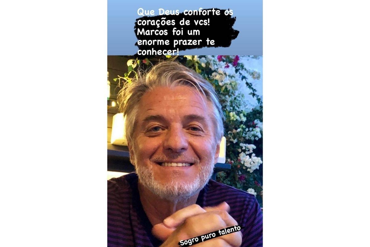 Na publicação, a atriz desejou força a família. “Que Deus conforte o coração de todos vocês. Marcos, foi um enorme prazer te conhecer. Sogro puro talento”, escreveu Isis na legenda da imagem compartilhada nos Stories da rede social.