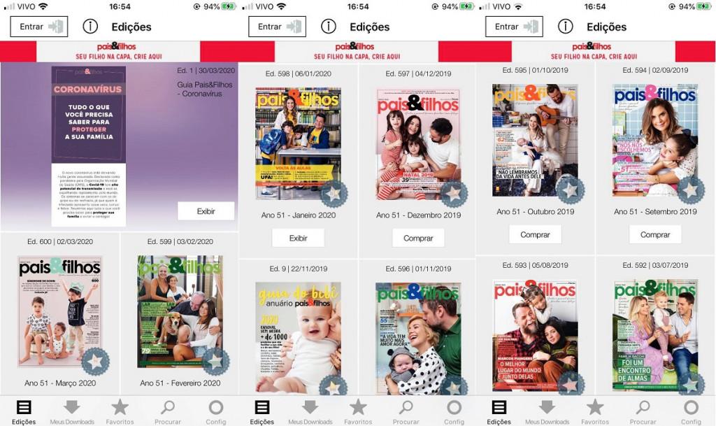 As edições publicadas em 2019 e 2020 podem ser acessadas diretamente no aplicativo “Revista Pais&Filhos”