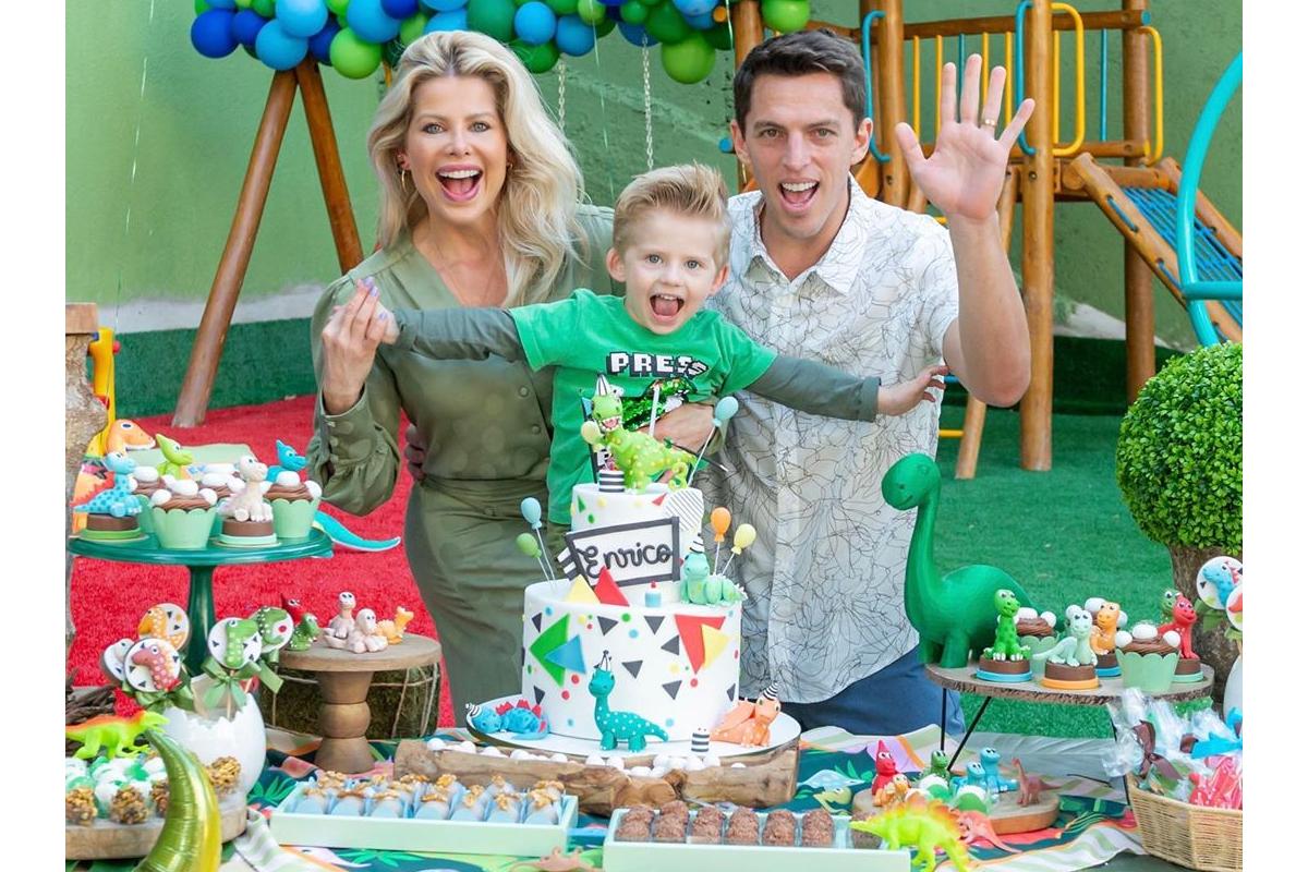 Karina Bacchi publicou no Instagram fotos da comemoração de aniversário do filho Enrico. O menino completou três anos e escolheu como tema da festa “Picnic T-rex”, literalmente colocando dinossauros para aproveitarem um piquenique.