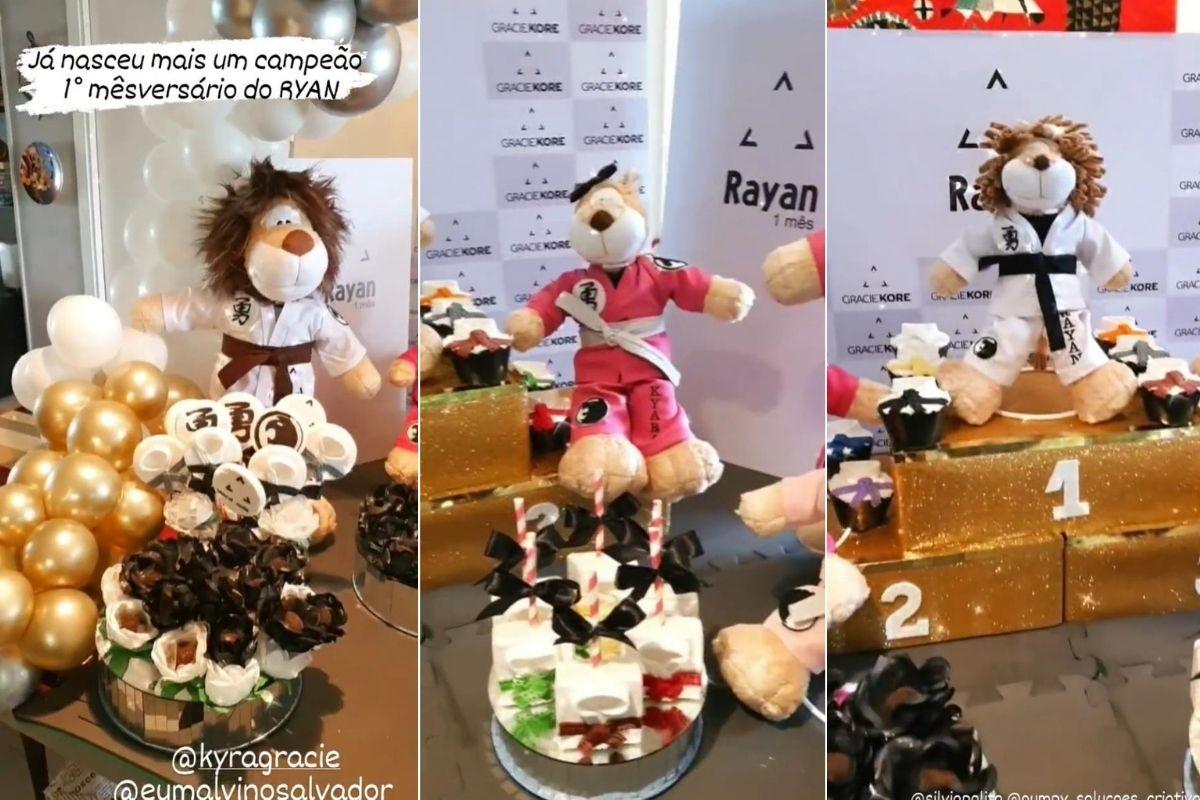 O tema da comemoração foi o melhor que eles poderiam escolher, pois tem tudo a ver com a paixão deles pelo jiu-jítsu: ‘Família Campeã’. A decoração contou com quimonos, e leões que representam a família. Kyra, Ayra e Kyara aparecem com quimonos rosa.