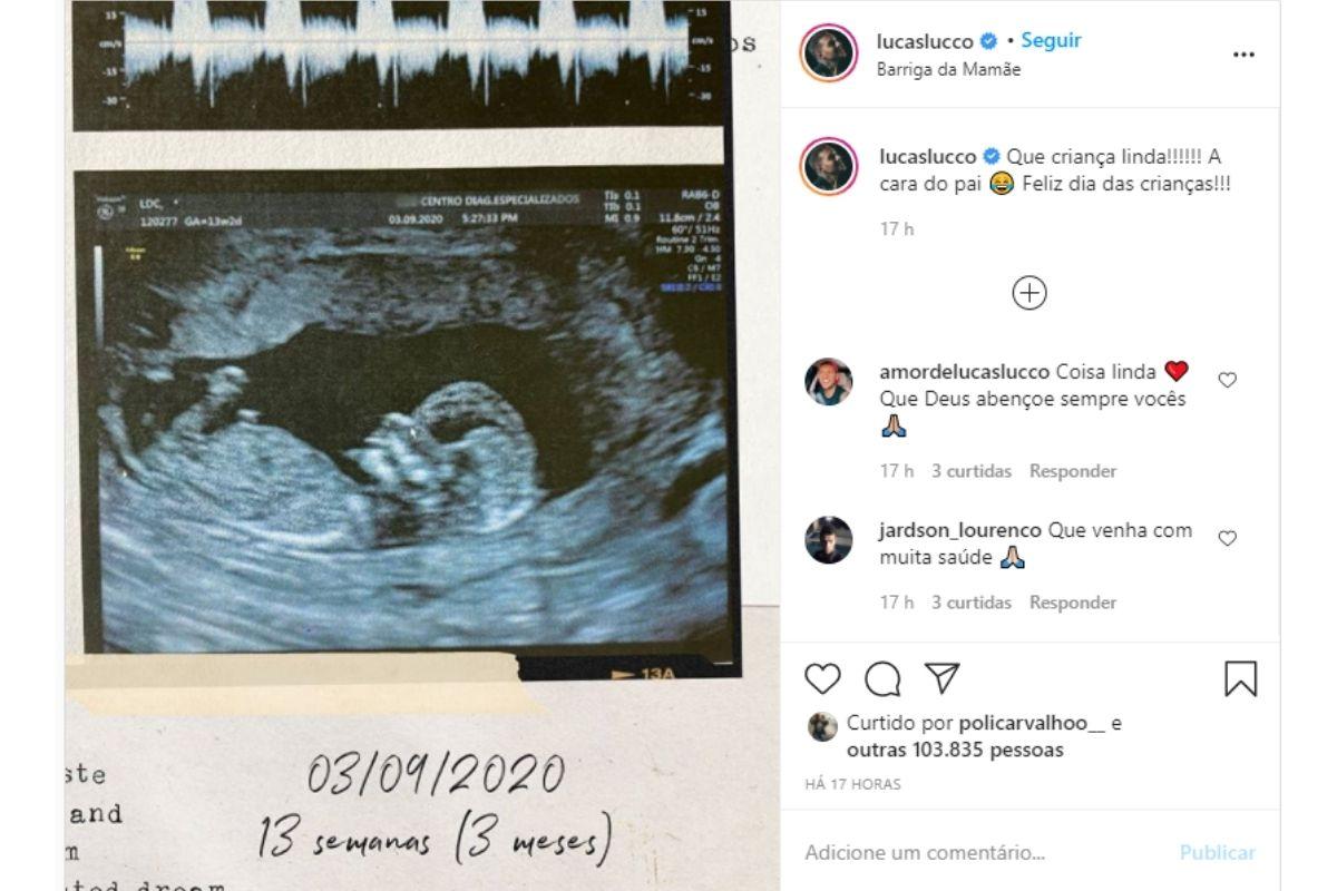 Momento especial! Na última segunda-feira, 12 de setembro, Lucas Lucco encantou os seguidores ao mostrar o ultrassom de três meses de gestação do filho. O cantor aproveitou o dia das crianças para babar pelo filho com Lorena Carvalho.