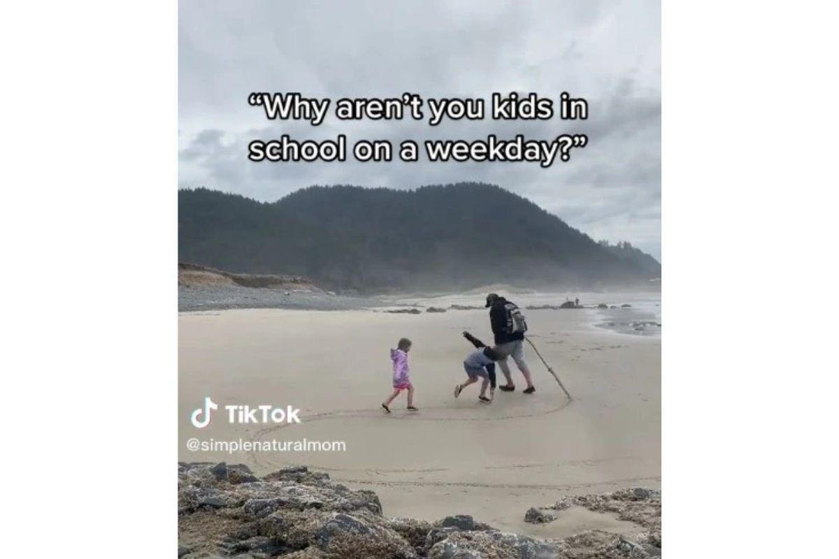 Uma mãe foi criticada no tik tok por ‘desescolarizar’ seus dois filhos, com pessoas alegando que nunca conseguirão empregos. Em um vídeo na rede social ela contou que tomou a decisão de tirar eles da escola para eles irem viajar juntos em uma van. A mulher postou um vídeo de seus filhos na praia no que parece ser um dia da semana, quando a maioria está na escola e gerou uma debate nas rede social sobre educação de crianças em casa.