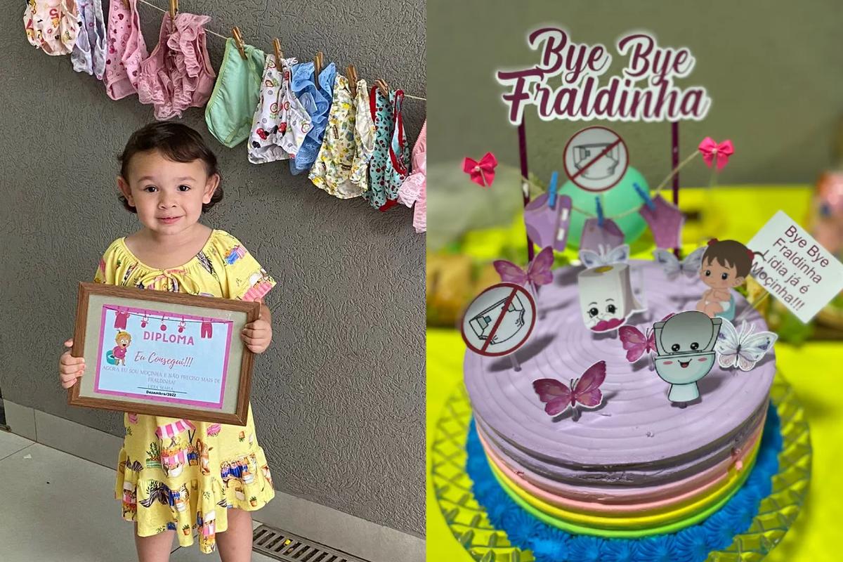 “Tchau, fraldinha”: menina de 3 anos recebe festa de desfralde com decoração e certificado