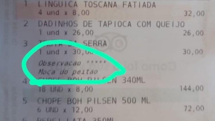 Ao chamar o gerente do estabelecimento, ele pediu desculpa e afirmou ser comum identificar os clientes por características físicas. “Ele só ficou sem graça porque a gente reclamou. Eu sou loira, meu braço é fechado de tatuagem, poderiam usar qualquer característica minha. Por que os meus seios chamaram a atenção? O que mais me incomodou foi o cunho sexual do estereótipo. Eu não dei essa liberdade, independentemente da roupa que estivesse usando.”