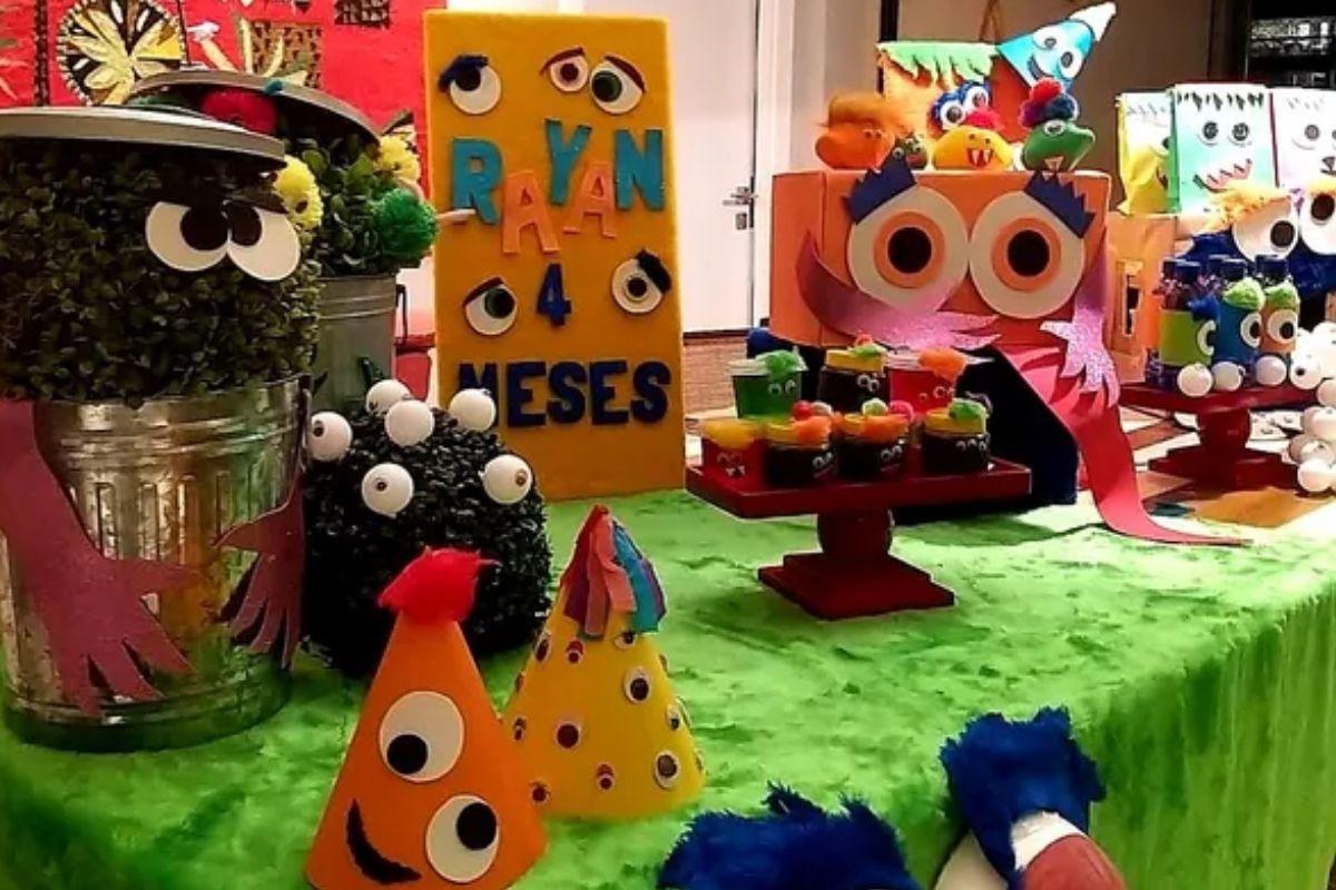 “Como eles não comem bolo nem doce, o bolo é feito com caixas de papelão empilhadas em formato de monstro. A festa é com a pegada de fazer em casa, com materiais baratos, é toda feita com papelão. Criamos garrafinhas de água personalizadas com carinhas de monstro divertidas”, acrescentou.