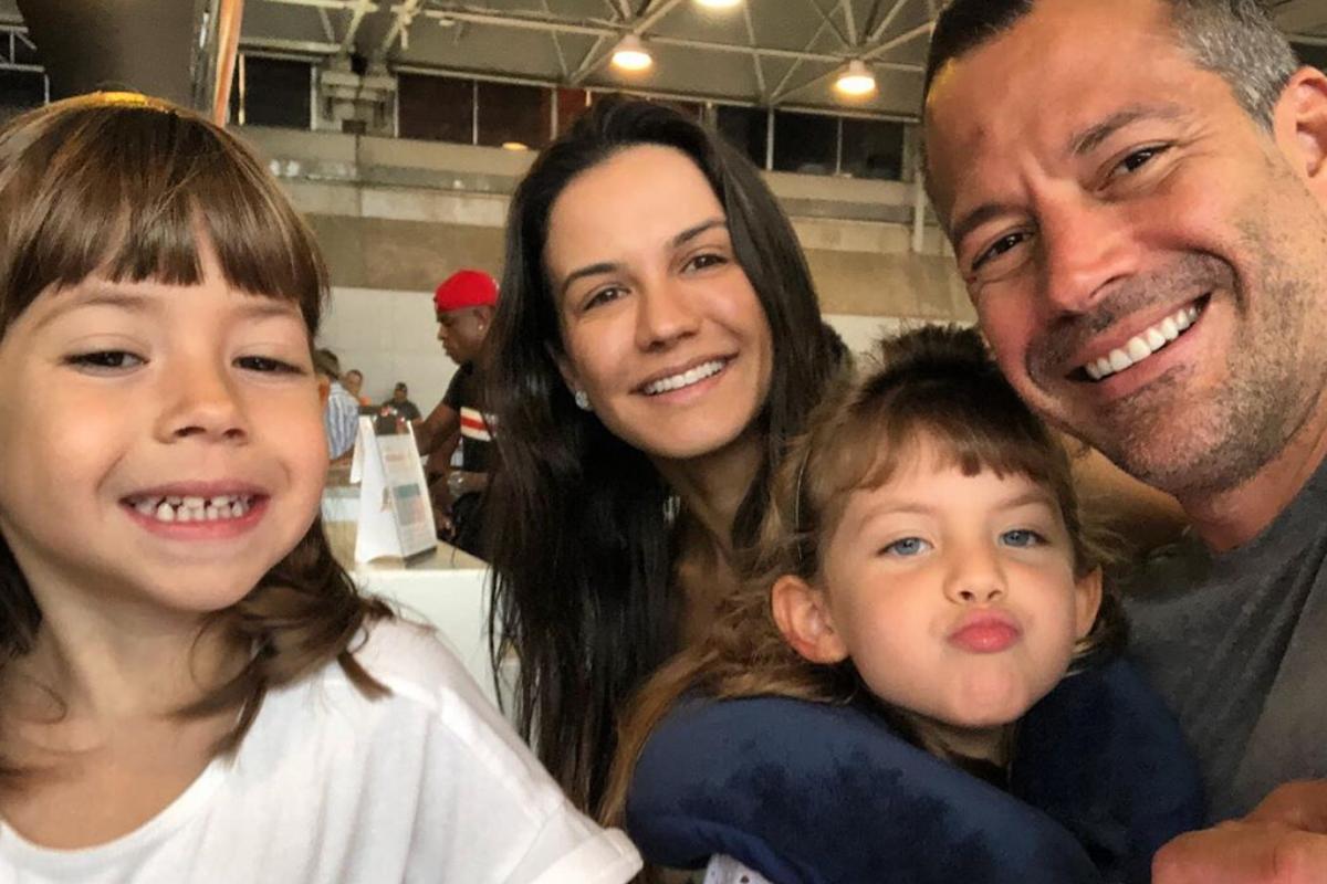 O ator, que também é pai de Sofia, de 10 anos, acabou de finalizar o trabalho na novela “A dona do pedaço” e agora vai aproveitar o tempo livre ao lado da família. A foto foi tirada no Aeroporto Internacional do Galeão, Rio de Janeiro.
